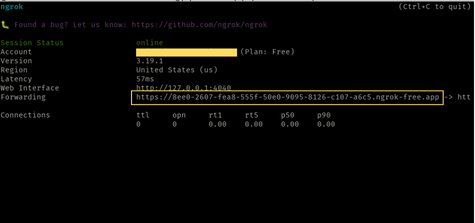 To fix this issue, we use Ngrok to create a secure tunnel to our local webhook server:
